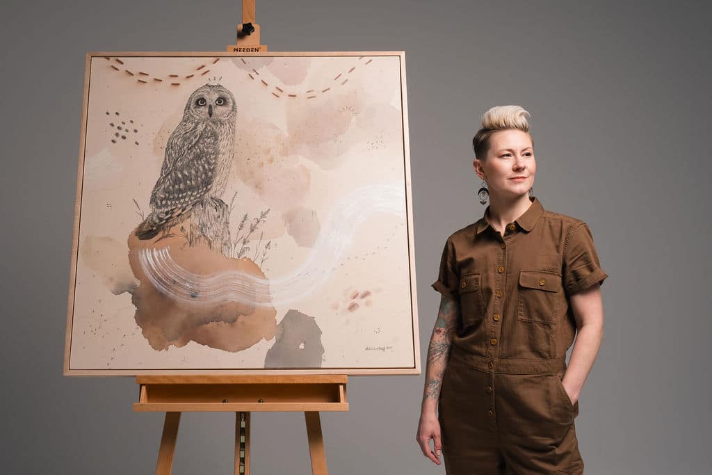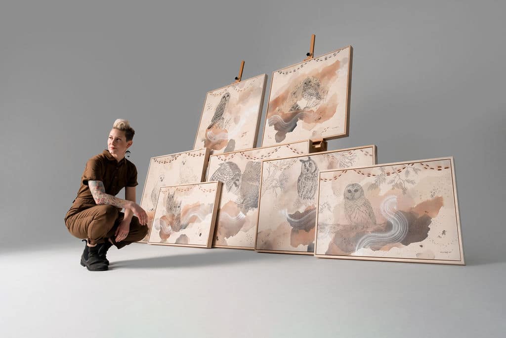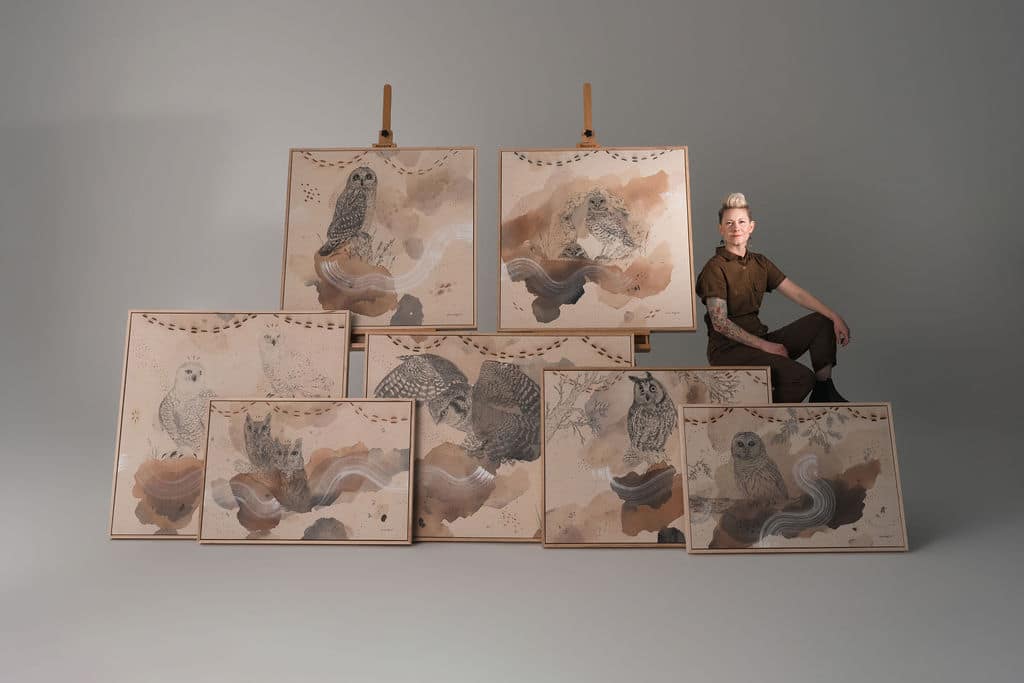 As with all my series work, substantial research was involved. I gather series-specific information in the initial, quiet stage before canvas work begins. With this series, I gathered several books, read many articles, and even took the 'Wonderful World of Owls' course with Cornell Lab of Ornithology.