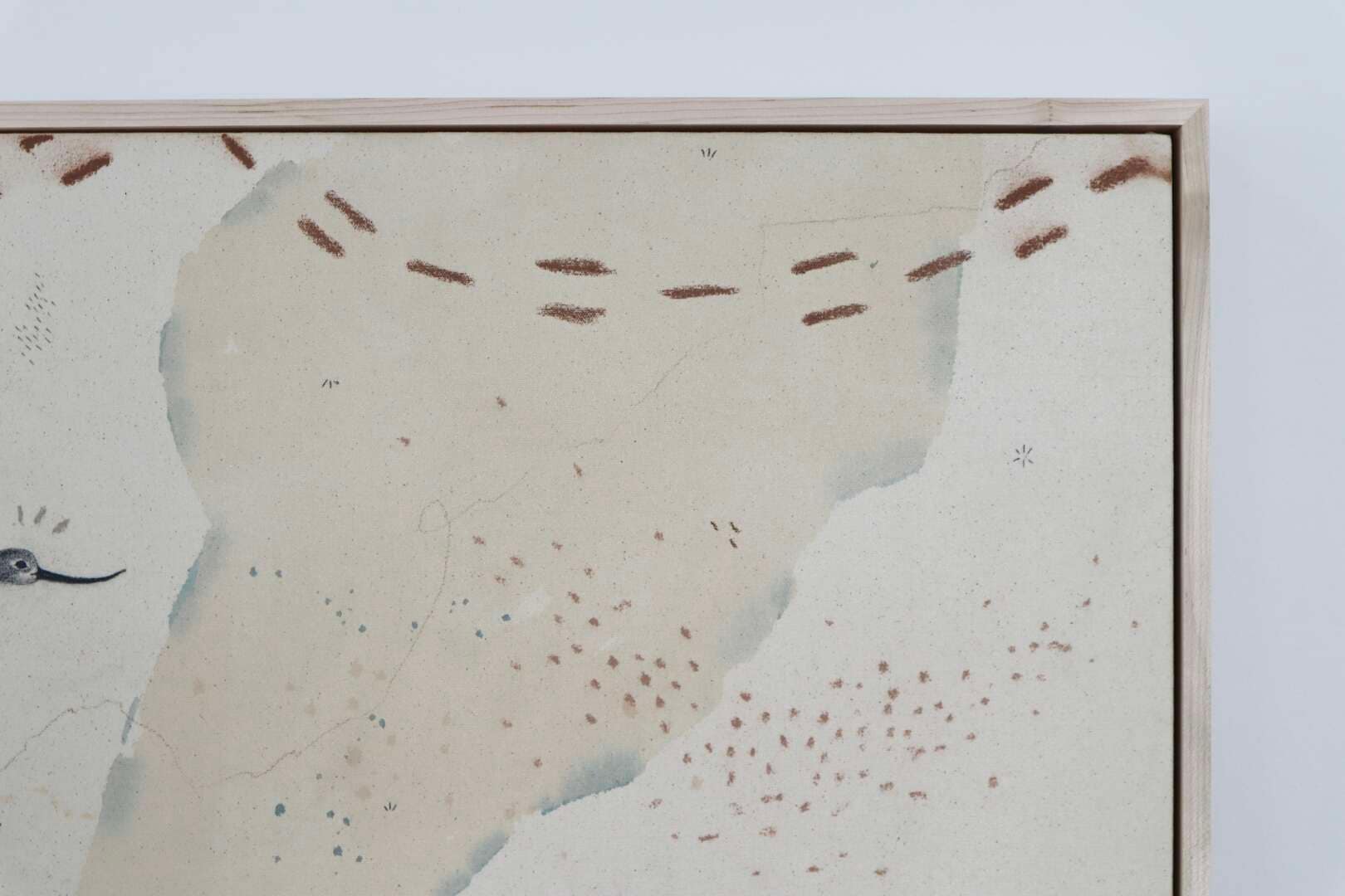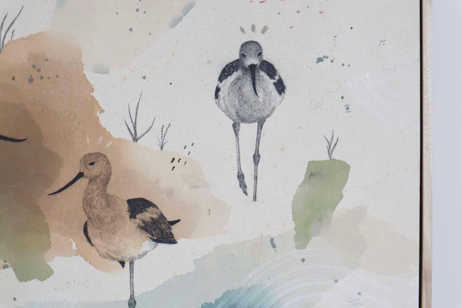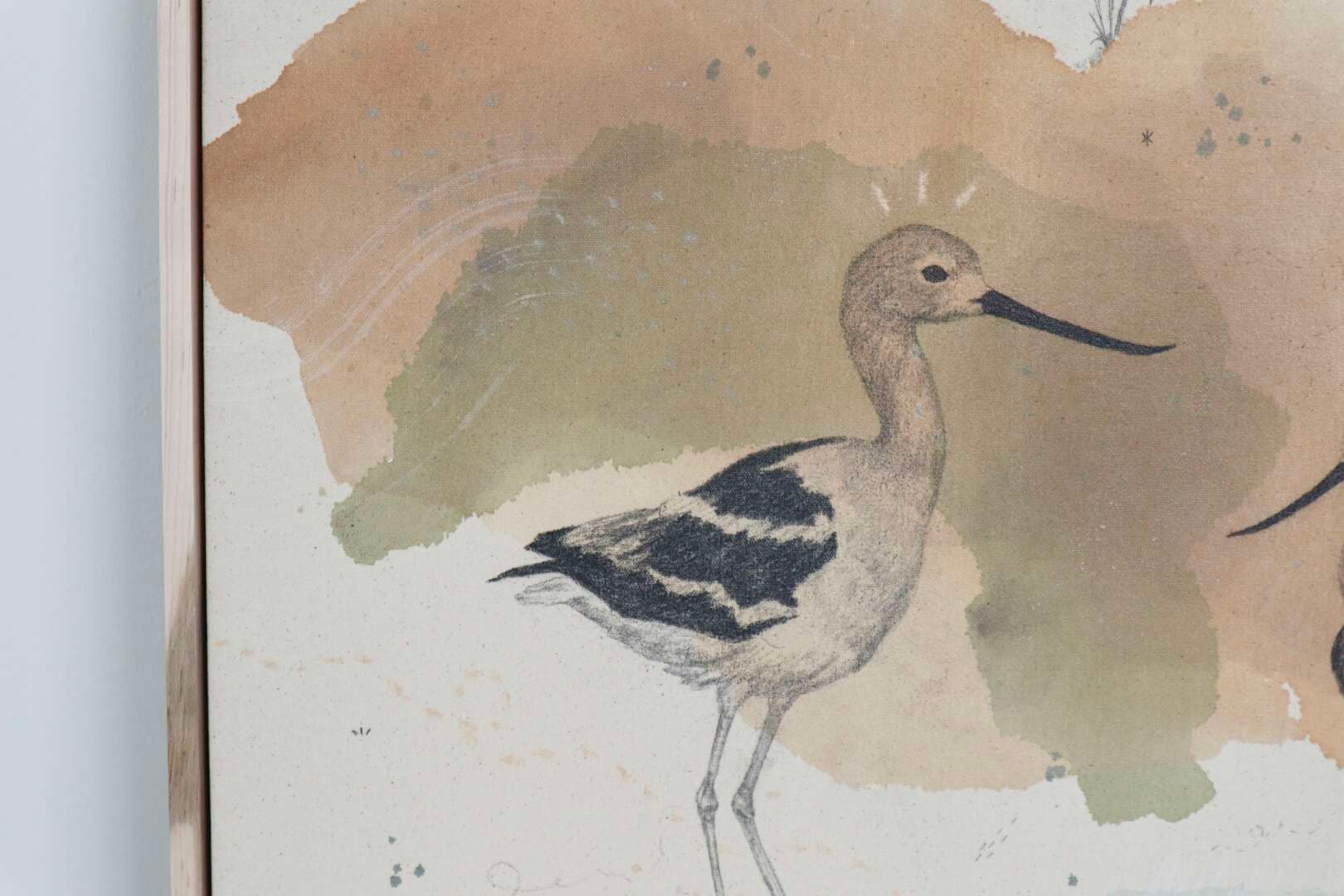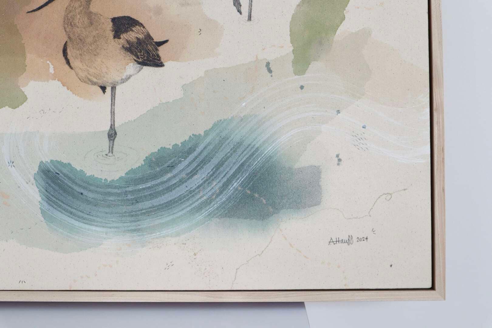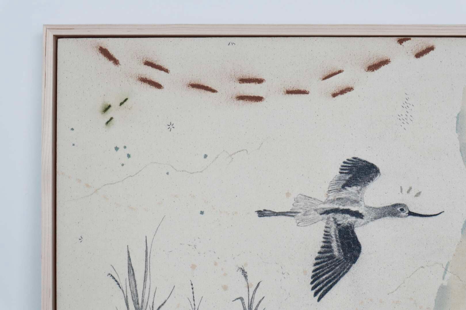 Original mixed media on raw stretched canvas with maple float frame. Alternate hardwood frame available upon request.
