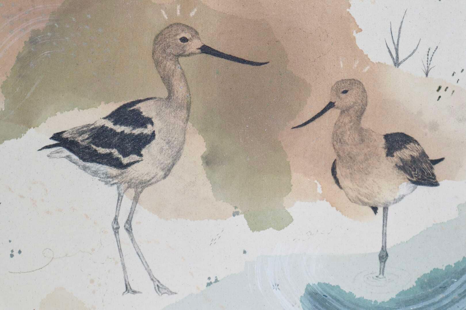 American Avocets forage in shallow fresh and saltwater wetlands, salt ponds, impoundments, and evaporation ponds. They nest in areas with little or no vegetation along dikes and islands. During winter they also use intertidal mudflats, tidal lagoons, brackish impoundments, sewage ponds, rice fields, and flooded pastures.Diet consists of aquatic invertebrates, plants, small fish, insects, and seeds. They capture aquatic invertebrates in the water column by sweeping their bill side to side, a signature behavior called scything. With each step they put their slightly open bill in the water and move it in the direction of the outstretched foot, alternating sides with each step. They also capture prey by pecking and plunging.