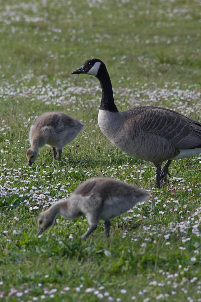 Canada Geese are particularly drawn to lawns for two reasons: they can digest grass, and when they are feeding with their young, manicured lawns give them a wide, unobstructed view of any approaching predators. Hence their spring and summer diets are mainly grases, and winter diet is mainly berries, seeds, and grains. If you’ve ever watched a family or two of geese foraging together, one or two adults will often be the ‘lookout’ for predators, while the others dine in a moving line.