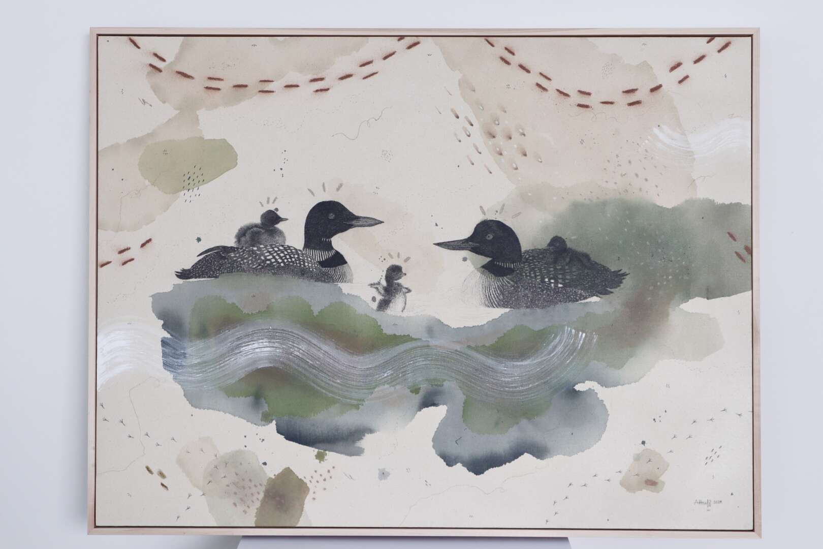 Original mixed media on raw stretched canvas with maple float frame. Alternative hardwood frames available upon request.