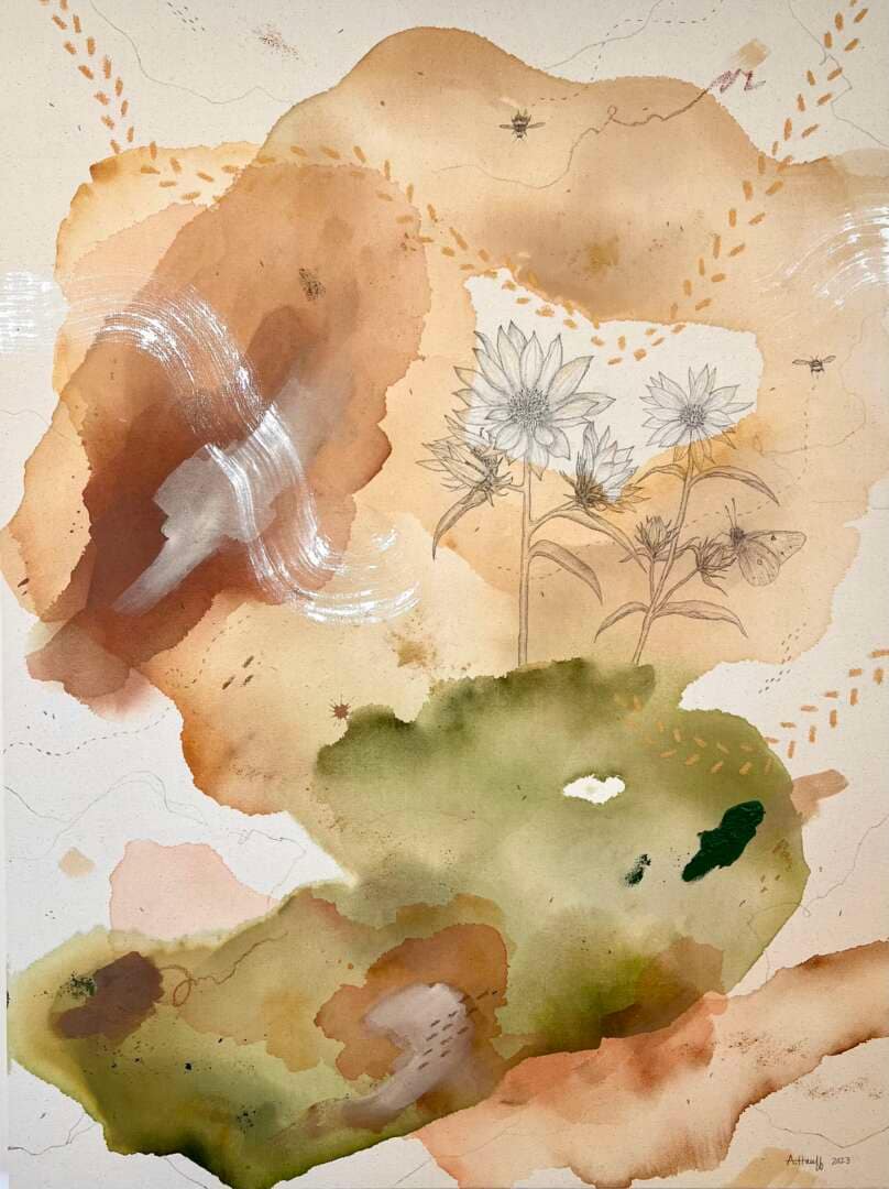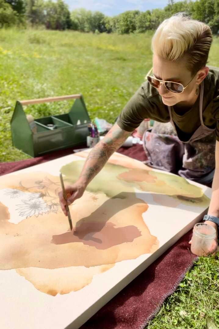 Original mixed media on raw stretched canvas with maple float frame. **Frame not pictured here as photo was taken prior to framing for the Studio Crawl Preview Exhibit at the Plains Art Museum! Please view this piece there until December.