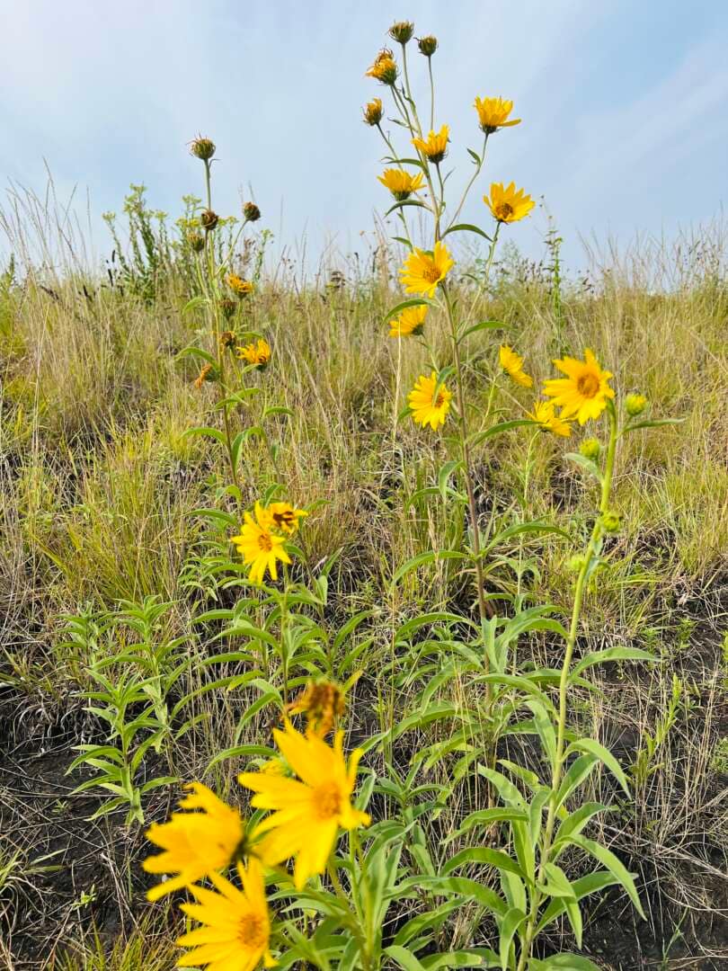 The thick rhizomatous root is edible and was used by Indigenous people for food. The flower buds can be cooked and eaten like artichokes, while seed kernels provide phosphorous, potassium and protein. Native Americans used the seeds and butter made from them as an “energy cake.” The sunflower has also been used as a diuretic and expectorant, and was known for antimalarial properties.