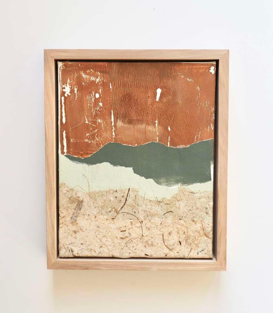 Made with hand-painted and handmade papers, these abstract landscapes are inspired by the prairie’s seasonal and temporal vistas. Varnished and ready to hang or be set on a shelf/table.