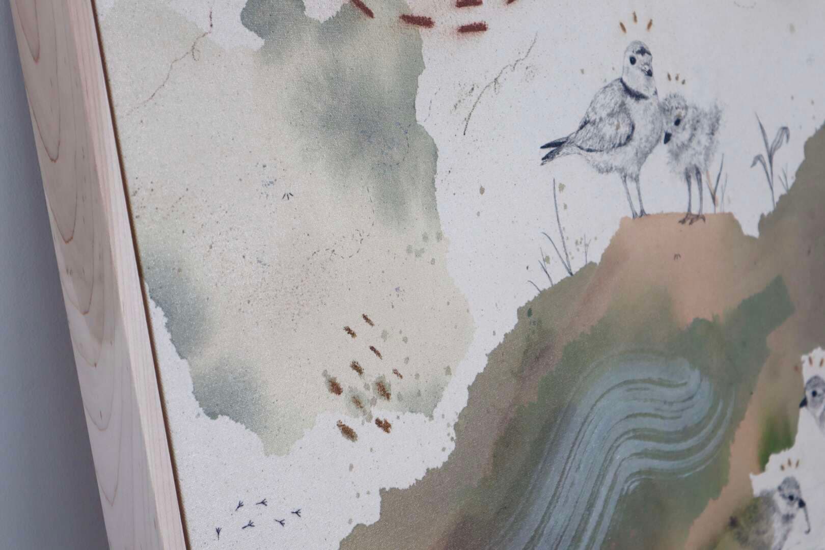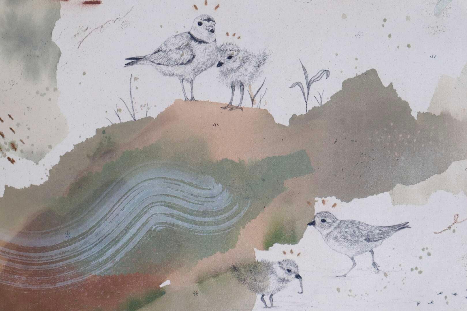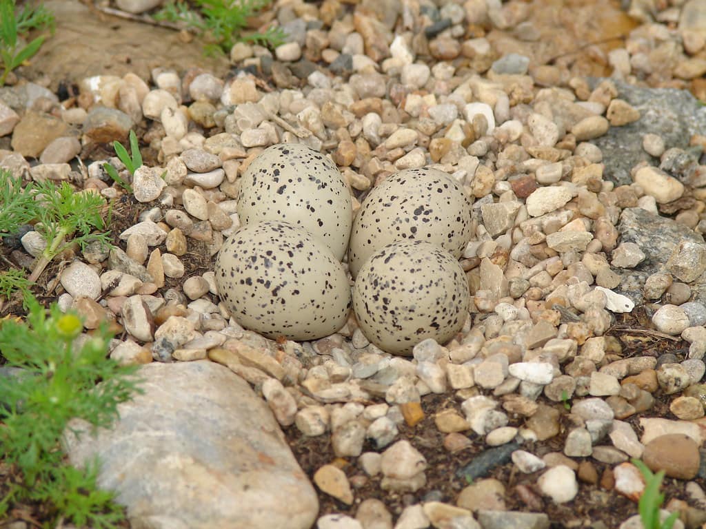 Despite traveling hundreds of miles between wintering and breeding sites, many Piping Plovers return to the same sites to breed and spend the winter. Individuals who return to breed with the same mate often nest within 128 feet of the previous nest site. They nest in open sandy areas near the shoreline where human disturbance is likely. Males establish territories soon after arrival and court females by tipping side to side in flight with deep and slow wingbeats above their territories. On the ground, males toss shells and pebbles aside and kick away sand to form a small depression that may be the future nest site. They also tilt their bodies, spread their wings, and fan their tails in front of a female.