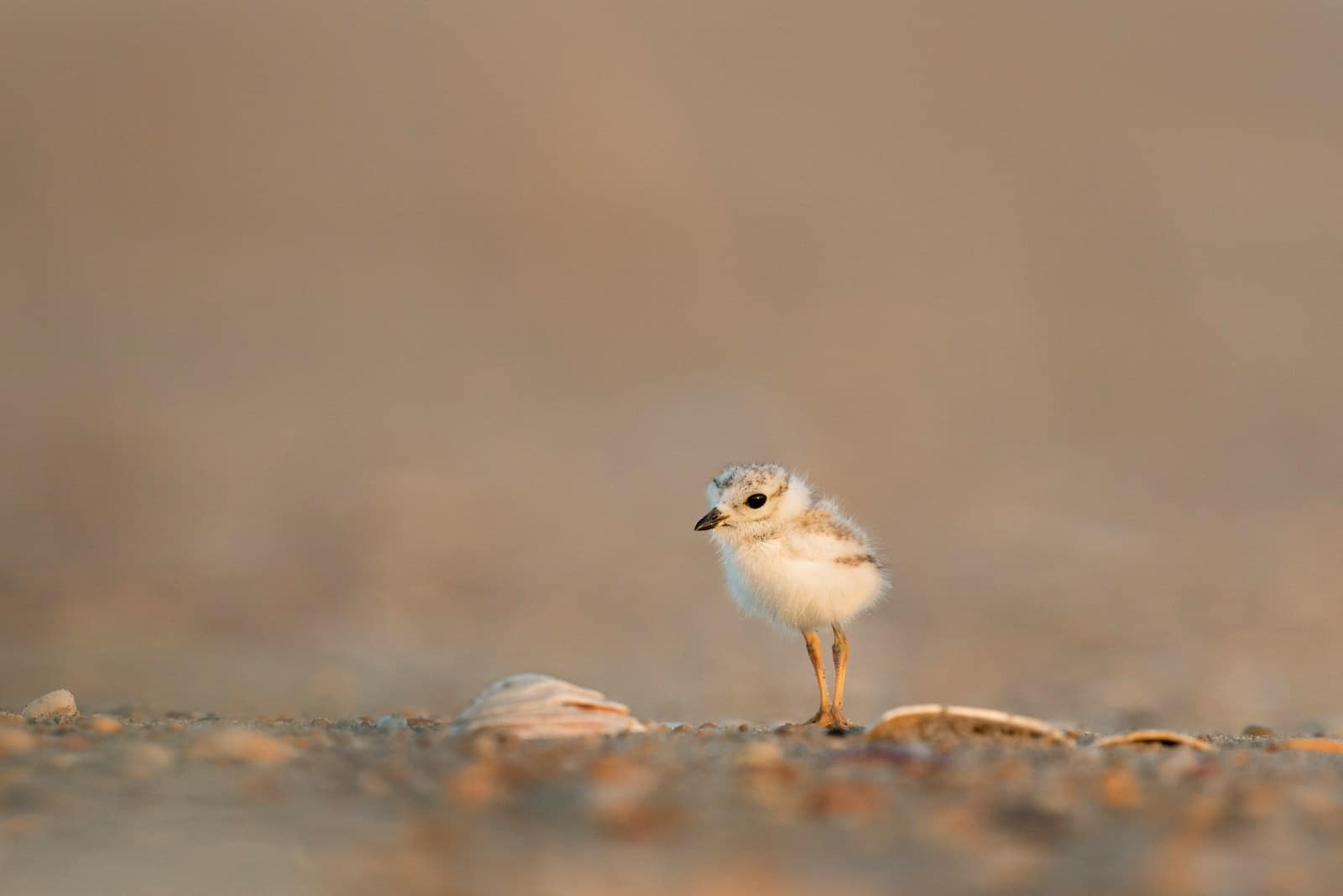 This round, big-eyed little shorebird is hard to spot–until they scurry down the shoreline or you hear a ‘peep-lo.’ They blend in perfectly with their sandy-grey backs. Piping Plover is almost purely a North American shorebird, inhabiting the Great Plains into mid-Canada, Great Lakes, and Atlantic shores. Diet includes marine worms, water insects, and crustaceans. They run for a bit and stop, kick up sand with one foot forward to entice creatures to come to the surface.