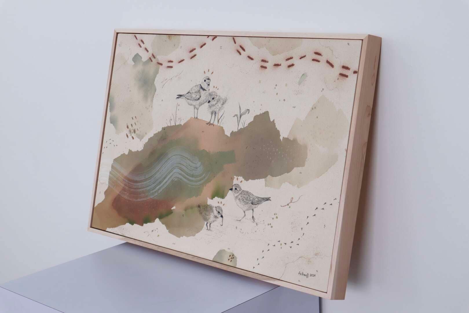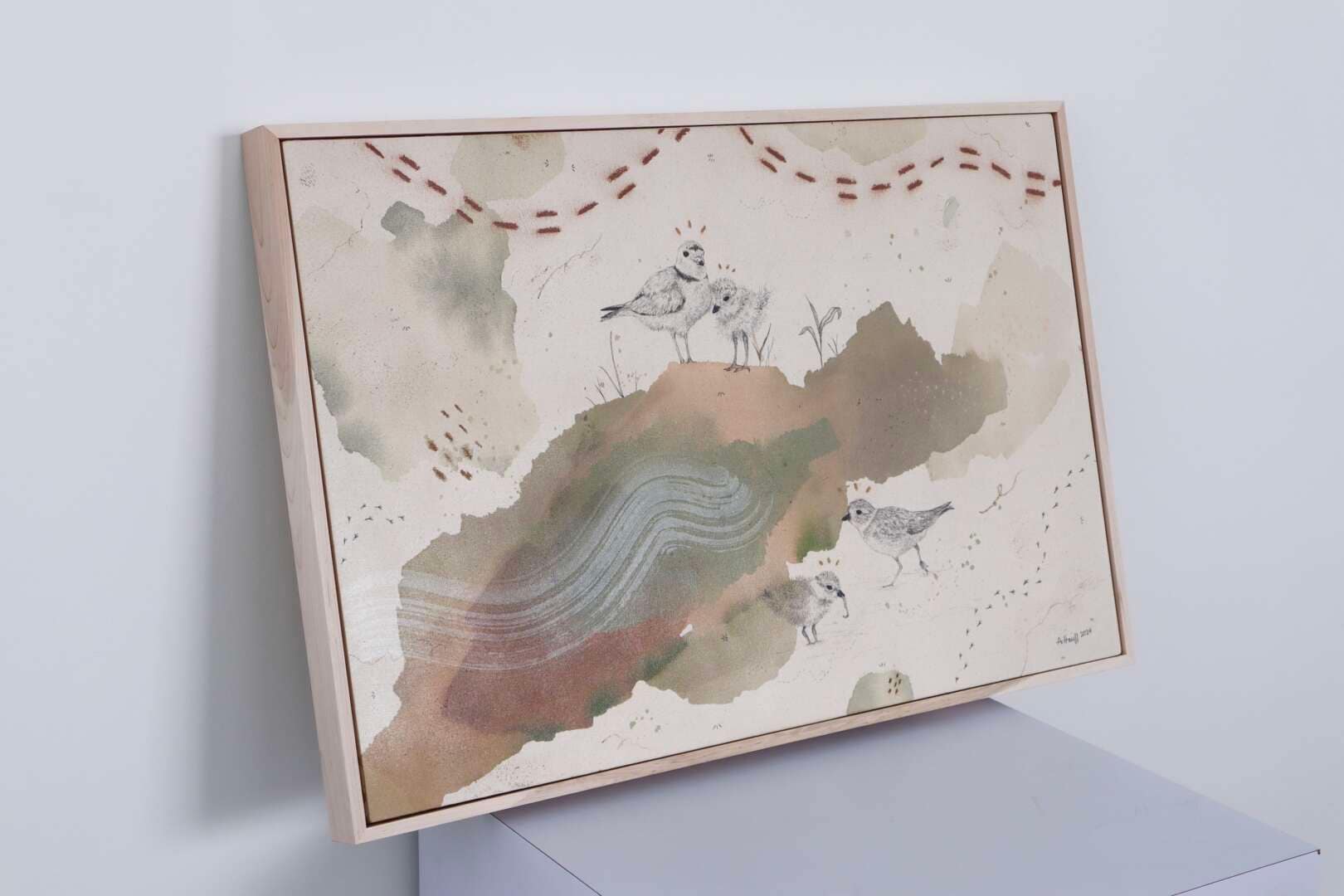 Both parents take turns incubating and defending the nest site, performing a broken-wing display to lead predators away. After hatching, downy chicks will snuggle under their bellies. Mated pairs are monogamous for at least the year, and some remain so for multiple years.