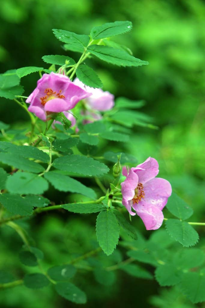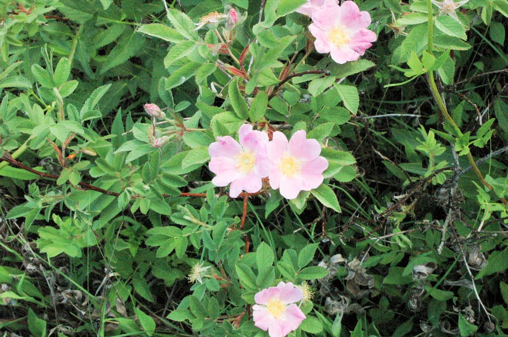 Indigenous folks used an infusion of the flowers or hips to treat bladder infections and kidney stones. Eaten fresh, rosehips are high in vitamin C, E, K, and B complex, beta carotene, flavonoids, selenium, manganese, and even some essential fatty acids. A Saulteaux Ojibwe legend tells the story of Nanaboozhoo teaching roses to defend themselves from being eaten by too many rabbits (why roses have thorns).