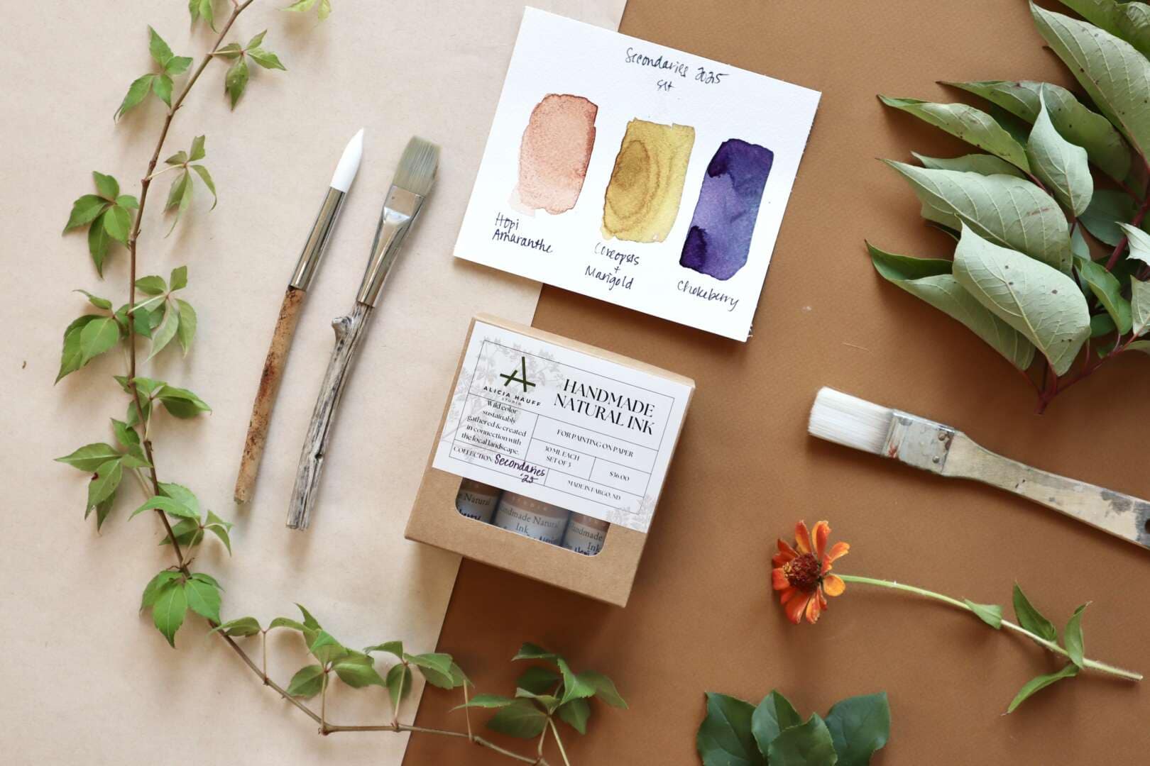 Hopi Red Amaranthe: From the tiniest seeds, leftover from years past, sprang multiple amaranthe plants in our garden this summer. Hope Red Amaranthe grows 4 feet tall! I took it as a sign to harvest some and create this ink again. The birds are already loving the grain this fall.