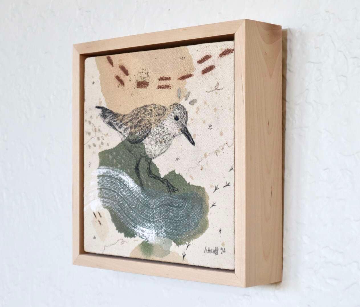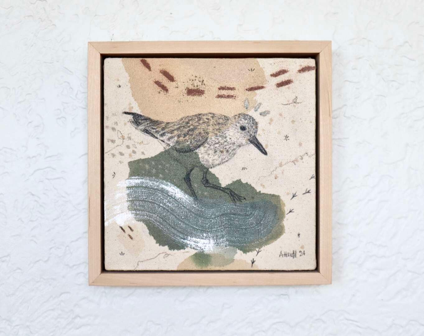 Original mixed media on raw stretched canvas with maple float frame. Alternative hardwood frames available upon request.