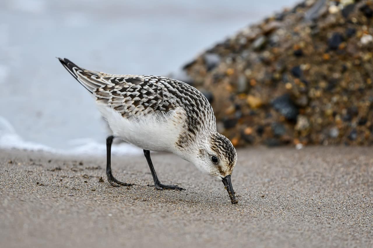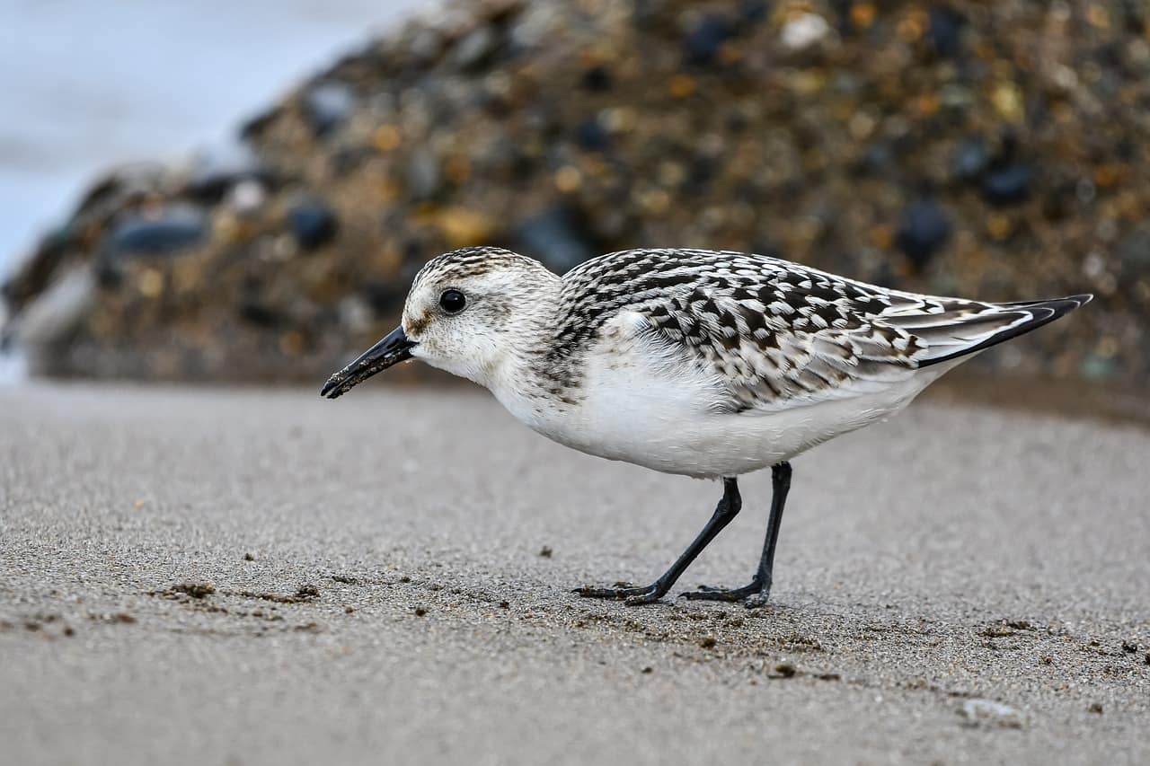 The Semipalmated Sandpiper gets its common name from the short webs between its toes (“palmated” means webbed). They spend their breeding summers in Northern Canada and the New England area coasts, migrating through the U.S. by the thousands. They winter primarily in South America, and studies have shown that they may make a non-stop flight of nearly 2000 miles from New England or eastern Canada to the South American coast.